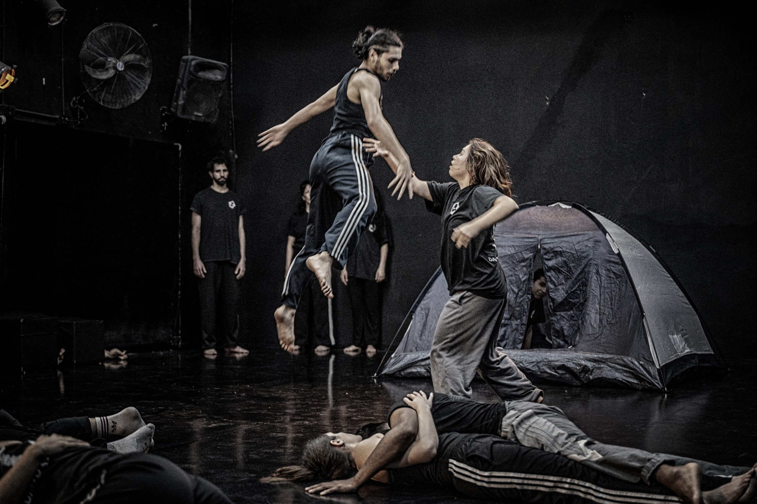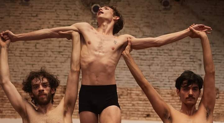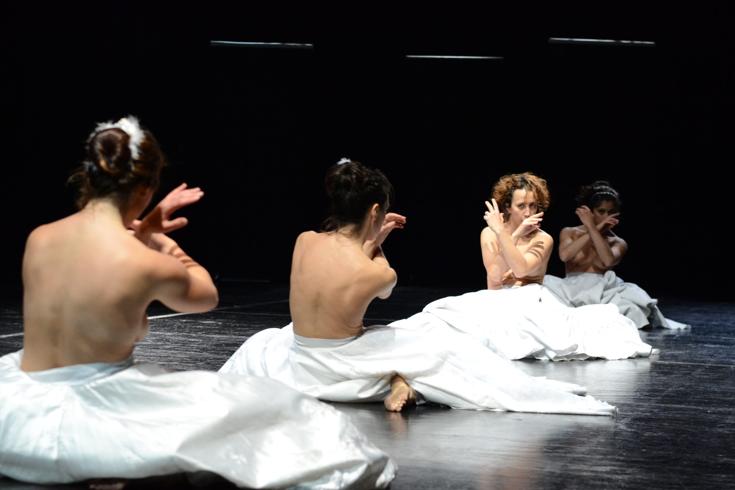 Una obra de danza y música donde hay seres que son peces que son aves y relámpagos. Una escena que se anula habitada por